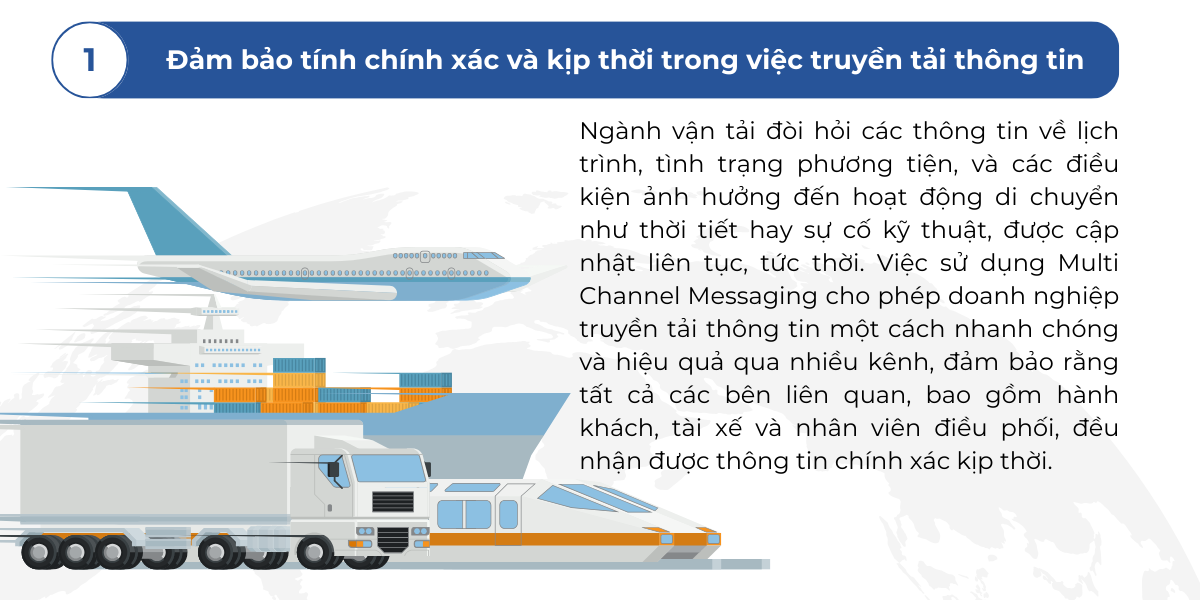 Theo báo cáo của McKinsey, các doanh nghiệp vận tải triển khai chiến lược đa kênh hiệu quả có thể giảm thiểu 20% thời gian xử lý sự cố và tăng 15% hiệu quả hoạt động. Trong ngành vận tải, việc truyền tải thông tin chính xác và kịp thời là yếu tố quyết định đến hiệu quả vận hành và an toàn của toàn bộ hệ thống.